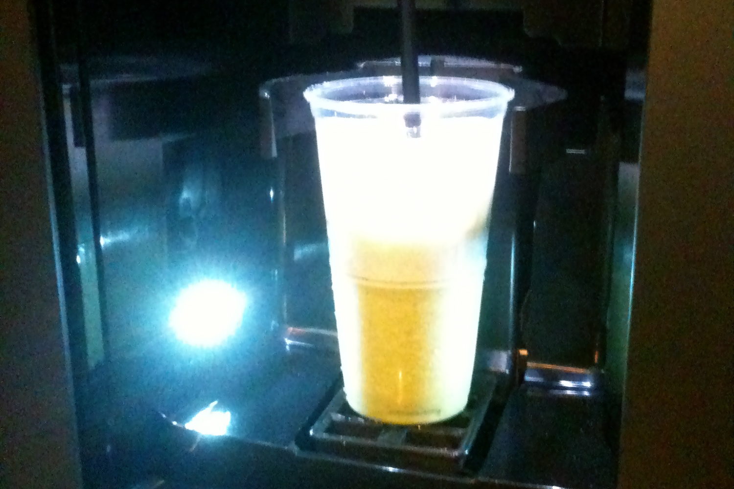 18 4月 2010 TETSU メシ・スイーツ系 No Comments 2010/04/18 TETSU re : Cafematic 前回、写真を撮り逃したCafematicに再度挑戦 今回は、抹茶クリームフラップスをチョイス 抹茶をじっくり抽出中は、BGMが流れ飽きさせません 自動ドアが開くとついに… この演出! LED照明に照らされて登場ダヨ コメント BGM, LED, 写真, 自販機, 茶