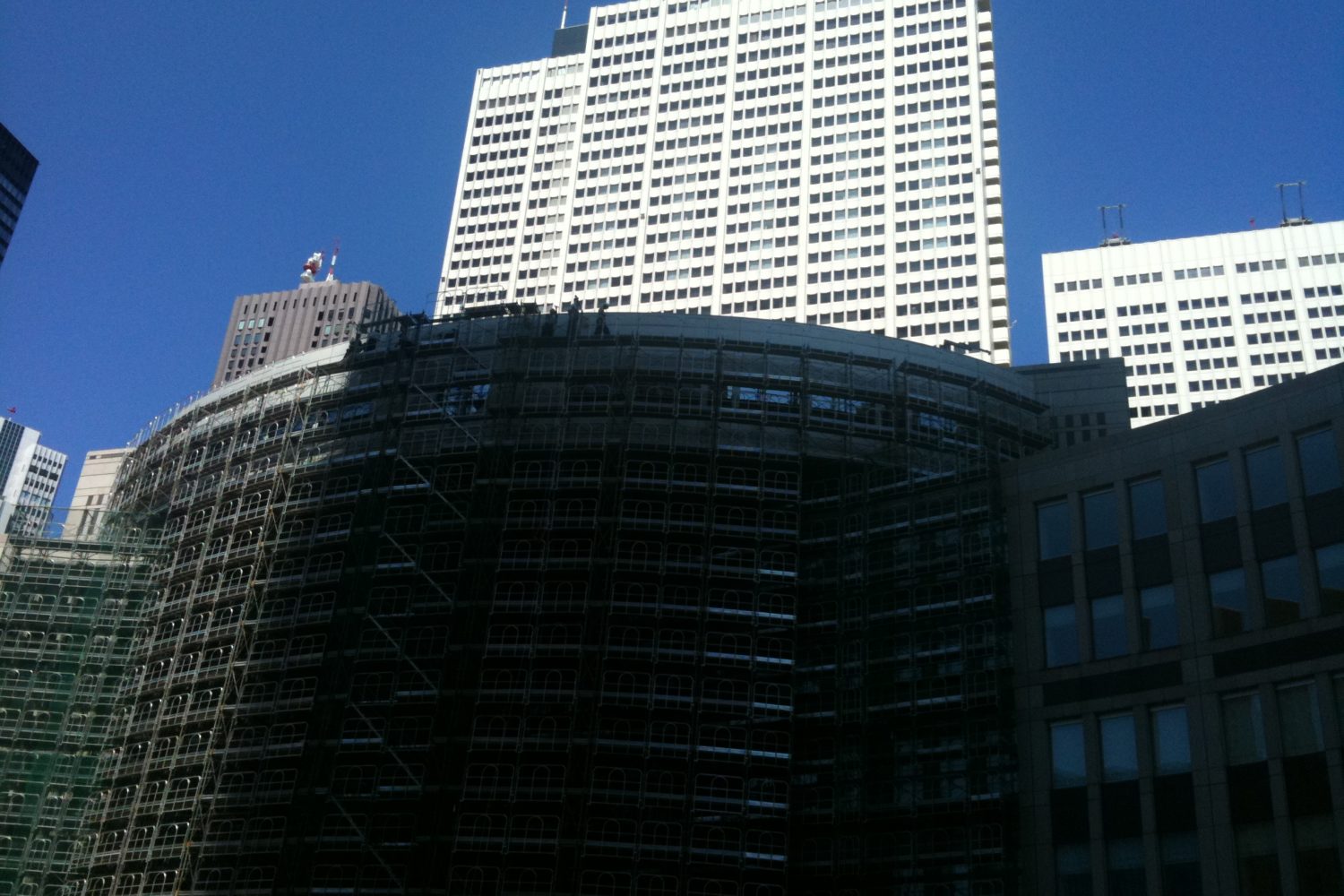 そういえば後ろの京王プラザ、オレが中学で初めて東京に来たときに泊まったってことは、既に都庁より古いんだよね。ここは47階建てだけど、そんな補強工事なんてやってないはず?