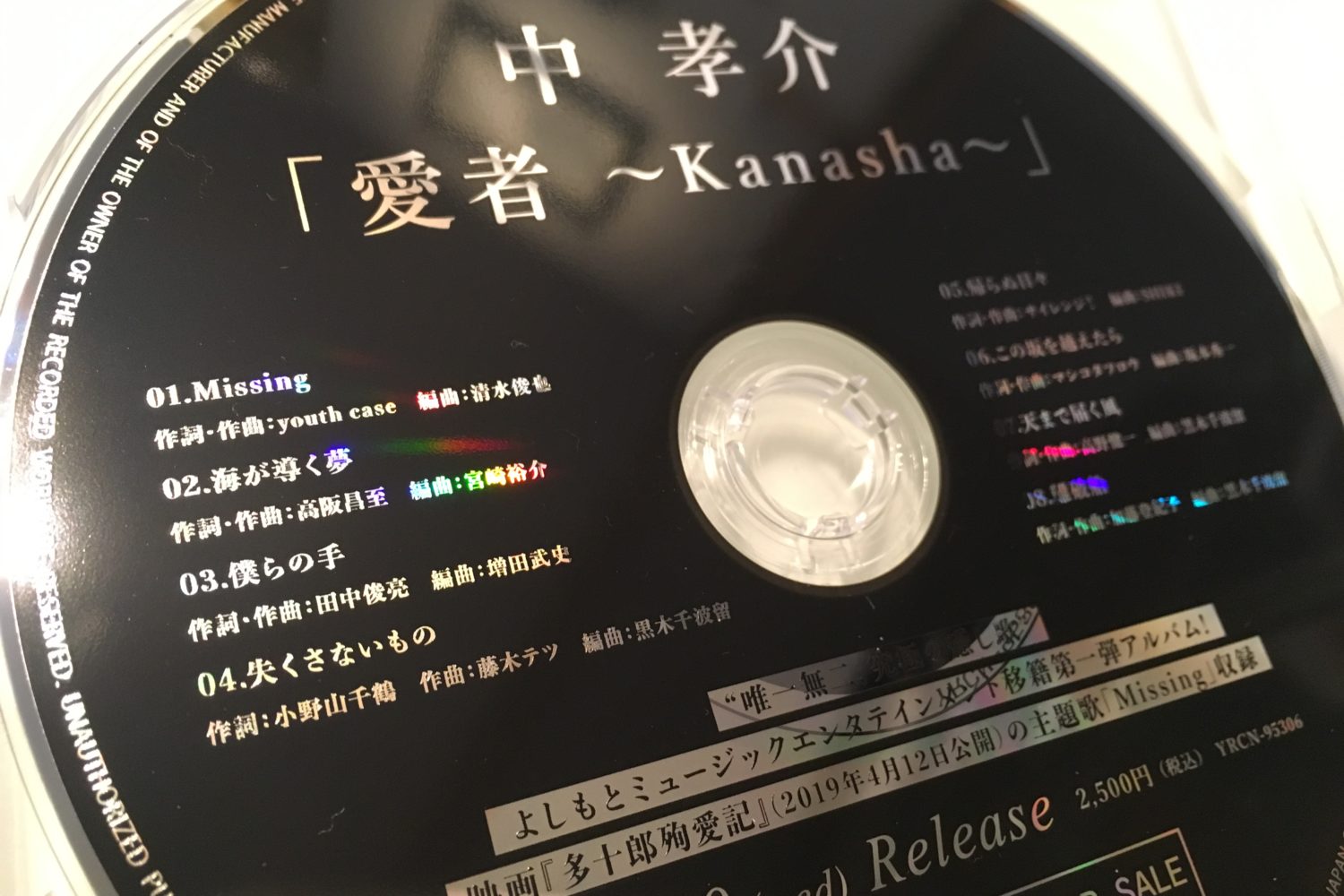 『中孝介』未だ読み方と漢字が一致していない人もいるようなので、『あたりこうすけ』さんです。よしもとミュージックエンタテインメントに移籍されての第一弾アルバムが4/10にリリースされまして、『失くさないもの』という楽曲を提供させていただきました。