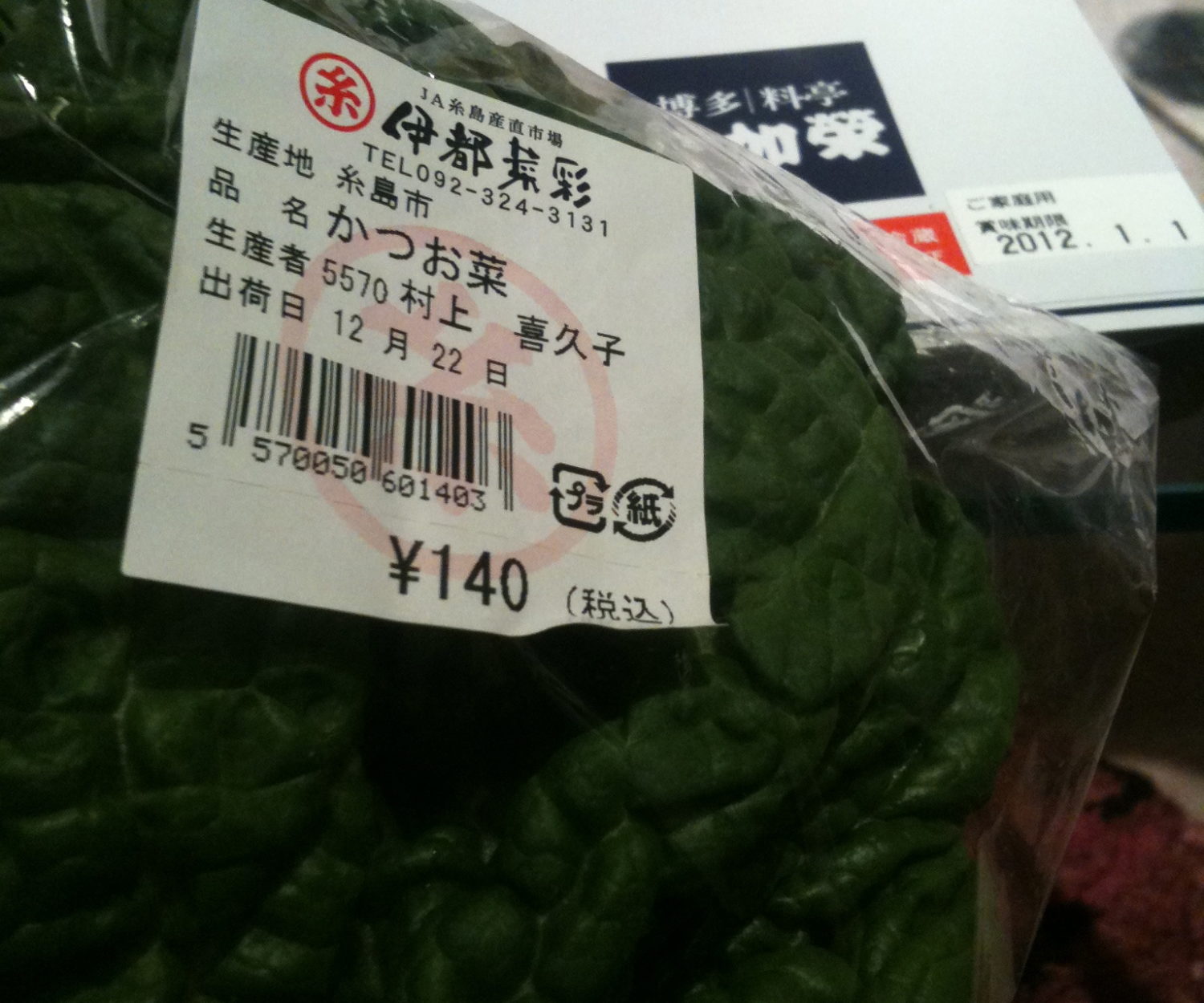 地域系 30 12月 2011 かつお菜と明太子 ご当地つながりで、もうひとつ。 実家の福岡から送られてきたのは、 稚加榮の明太子と「かつお菜」 かつお? このかつお菜は福岡の伝統野菜。しっかりした葉っぱです。 これ高菜の仲間?なんかな。高菜は大好きなのだな。 雑煮にするというんだけど、シンプルに厚揚げ豆腐と一緒に煮てみました。 うん、おいしい。チンゲン菜なんかとも違う風味。 もちろん鰹の味はしませんでしたけども。 TETSU No Comments
