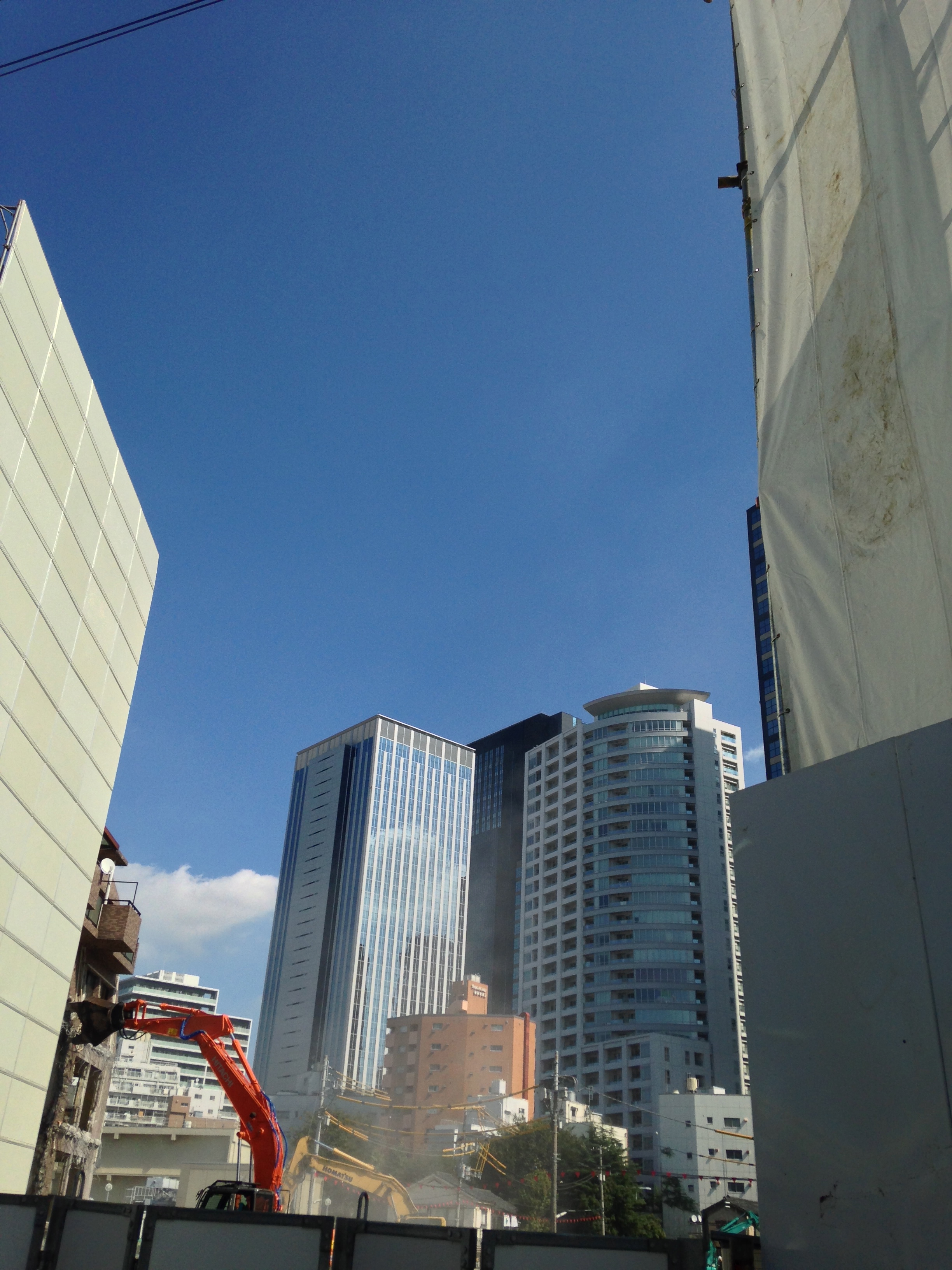 2年前にあれよあれよと更地になった「西新宿五丁目中央北地区」の工事現場。ついに大キリン2頭が姿を見せました。今日は工事はお休みで佇んでいたのをパチリ。夕陽に当たって綺麗です。